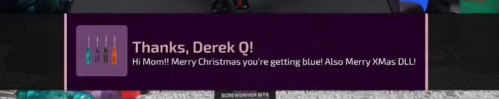 Hi Mom!! Merry Christmas you're getting blue! Also Merry XMas DLL!