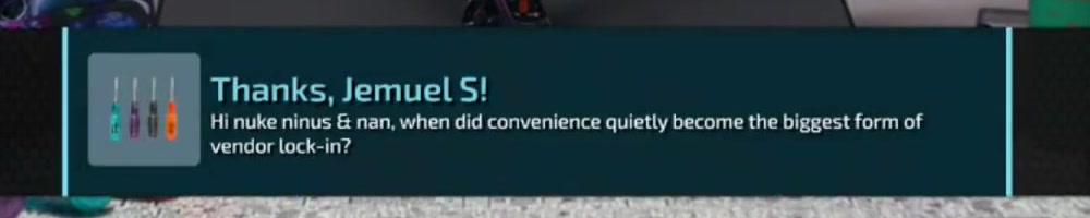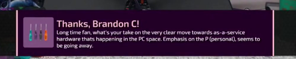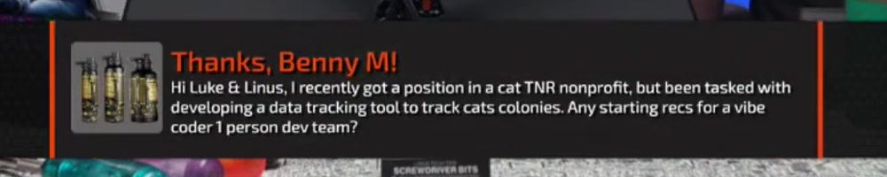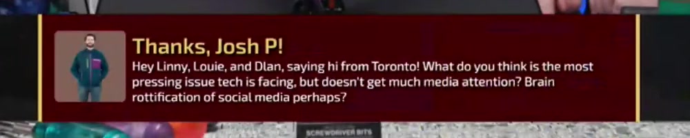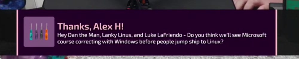 Dan, I'm doing this to make your job harder, or you can throw it over to Linus (RIP