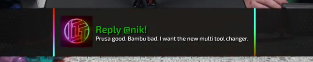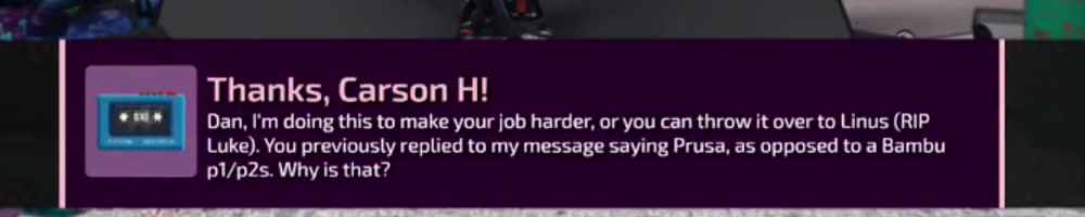 Luke). You previously replied to my message saying Prusa, as opposed to a Bambu