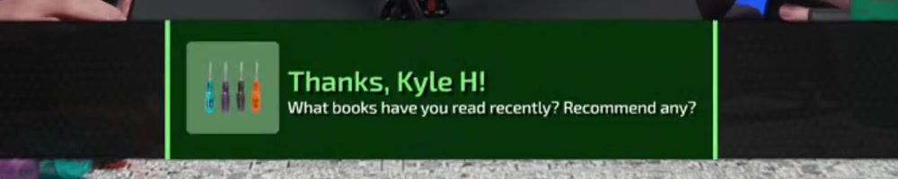 | Kyle J | message | Thanks, Kyle J!