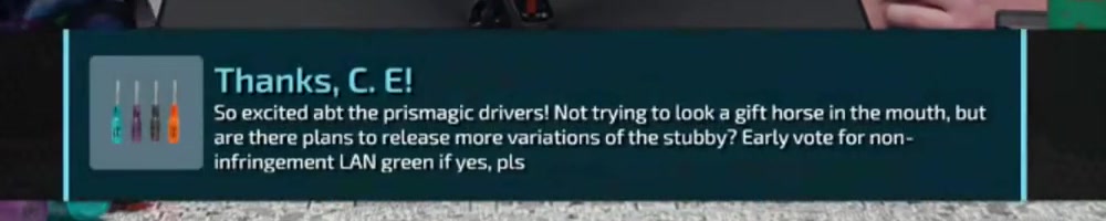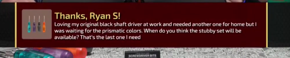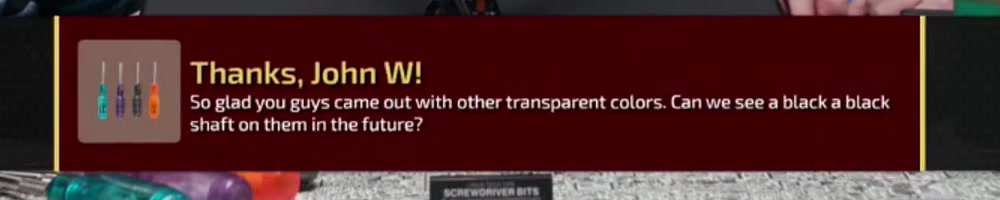 ask, are there any plans for a transparent/prismagic stubby or precision driver? You