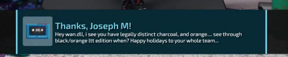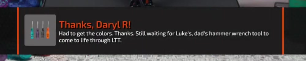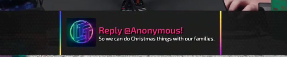 black/orange ltt edition when? Happy holidays to your whole team... | Timestamp |  |