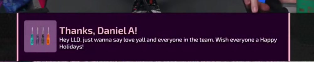 | Chandler D | message | Thanks, Chandler D!