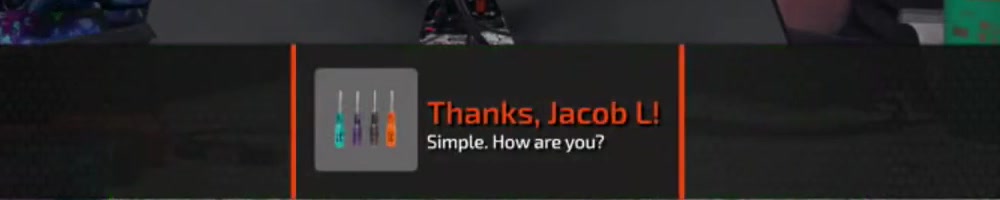 | Jaocb R | message | Thanks, Jaocb R!