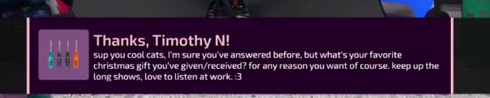 Wuke, Winus, and Wan: Faworite Crwimmas presents of all time? uwu | Timestamp |  |