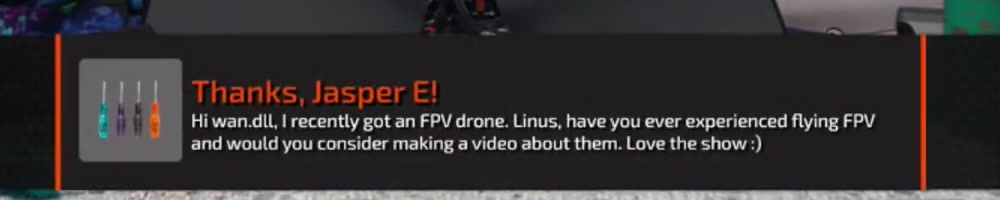 Hi wan.dll, I recently got an FPV drone. Linus, have you ever experienced flying FPV