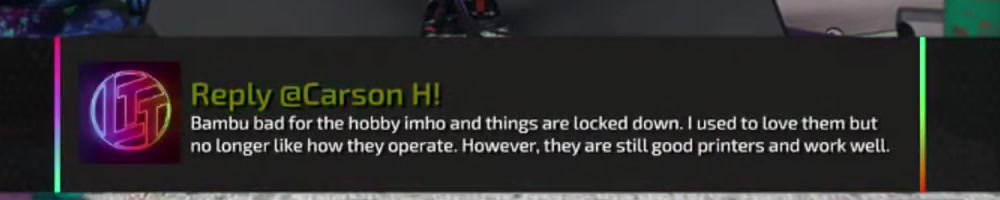 Bambu bad for the hobby imho and things are locked down. I used to love them but