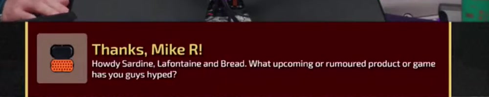 Howdy Sardine, Lafontaine and Bread. What upcoming or rumoured product or game