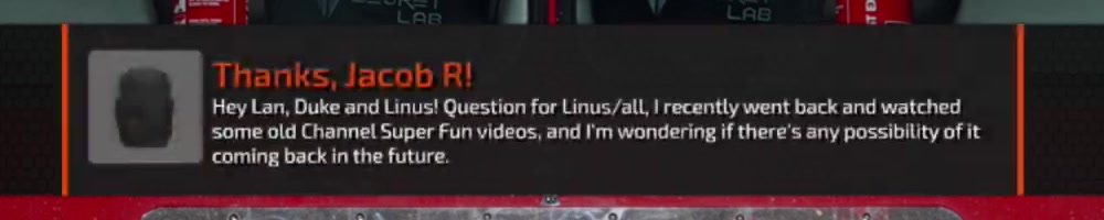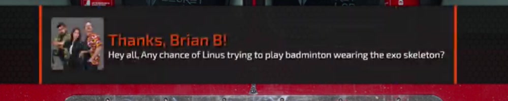 Hey all, Any chance of Linus trying to play badminton wearing the exo skeleton? | Timestamp |  |