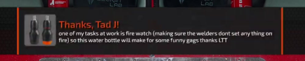 fire) so this water bottle will make for some funny gags thanks LTT | Timestamp |  |