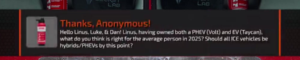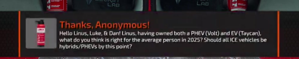 Hello Linus, Luke, & Dan! Linus, having owned both a PHEV (Volt) and EV (Taycan).
