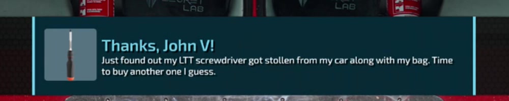 Just found out my LTT screwdriver got stollen from my car along with my bag. Time