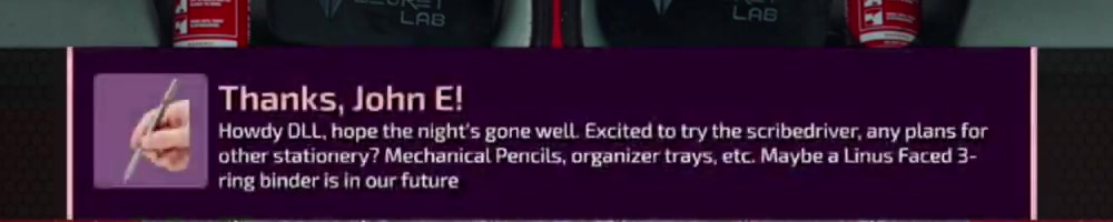 Howdy DLL, hope the night's gone well. Excited to try the scribedriver, any plans for