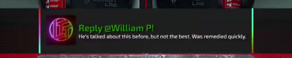He's talked about this before, but not the best. Was remedied quickly. | Timestamp |  |