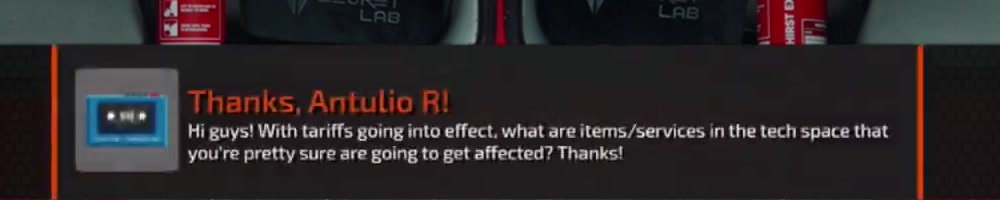 Hi guys! With tariffs going into effect, what are items/services in the tech space that