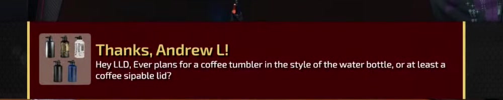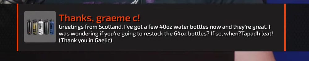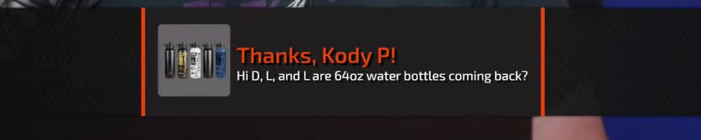 Hi D, L, and L are 64oz water bottles coming back? | Timestamp |  |
