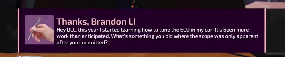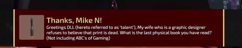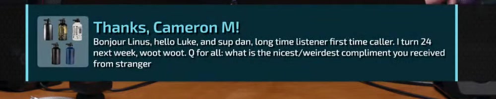 Your message was curated! We will answer it later in the show. | Timestamp |  |