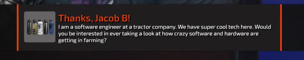 I am a software engineer at a tractor company. We have super cool tech here. Would