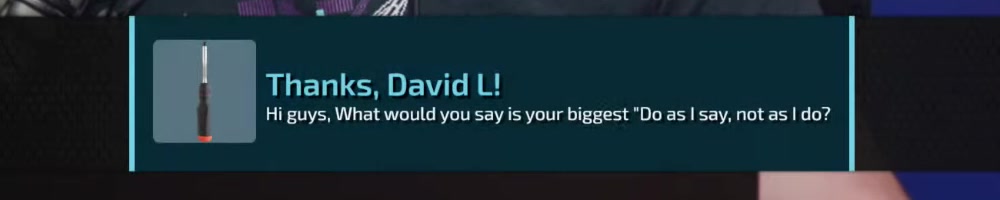 Hi guys, What would you say is your biggest "Do as I say, not as I do? | Timestamp |  |
