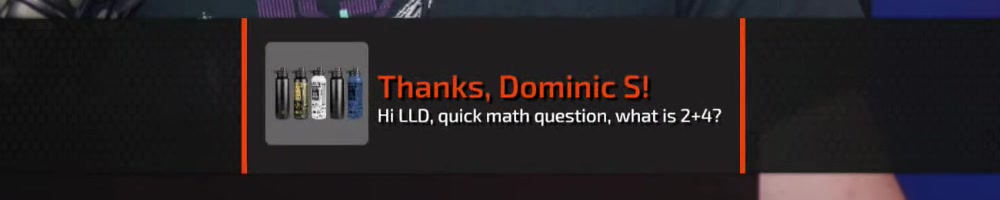 Hi LLD, quick math question, what is 2+4? | Timestamp |  |