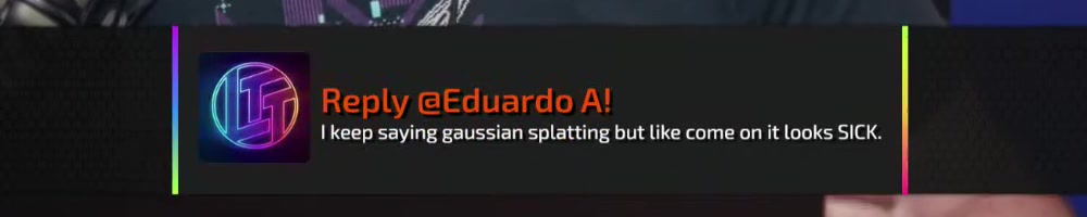 I keep saying gaussian splatting but like come on it looks SICK. | Timestamp |  |