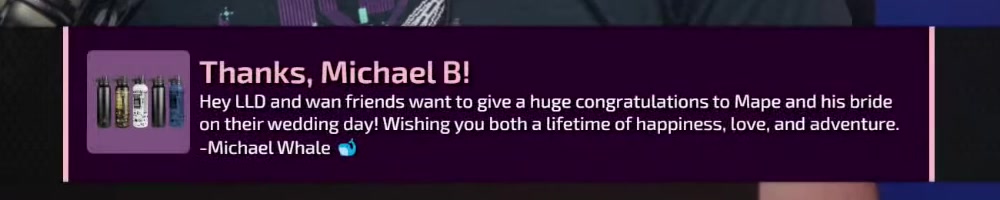 Hey LLD and wan friends want to give a huge congratulations to Mape and his bride
