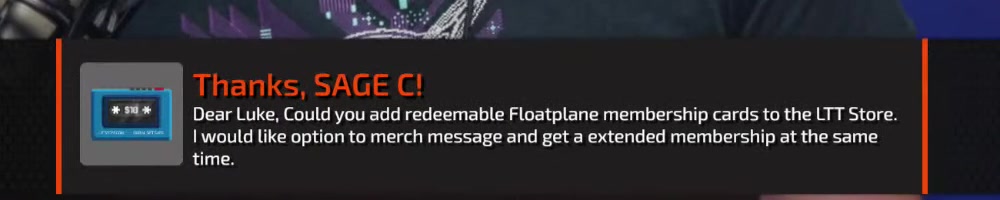 Dear Luke, Could you add redeemable Floatplane membership cards to the LTT Store.