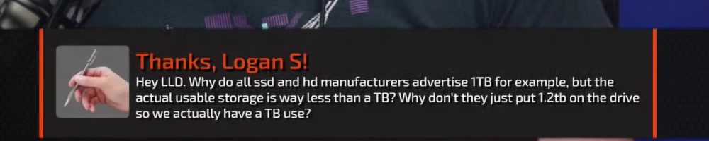 Hey LLD. Why do all ssd and hd manufacturers advertise 1TB for example, but the