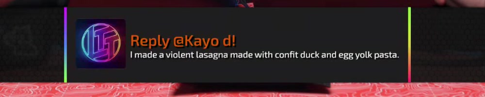 I made a violent lasagna made with confit duck and egg yolk pasta. | Timestamp |  |