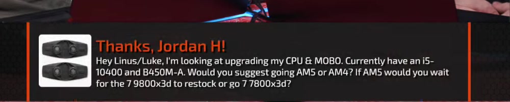 for the 7 9800x3d to restock or go 7 7800x3d? | Timestamp |  |