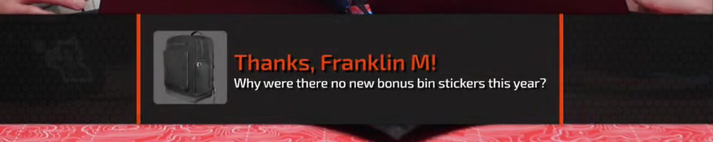 Why were there no new bonus bin stickers this year? | Timestamp |  |