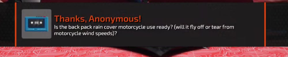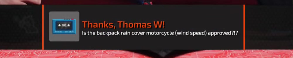 Is the backpack rain cover motorcycle (wind speed) approved?!? | Timestamp |  |