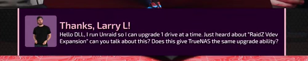 Expansion" can you talk about this? Does this give TrueNAS the same upgrade ability? | Timestamp |  |