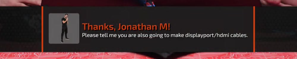 Please tell me you are also going to make displayport/hdmi cables. | Timestamp |  |