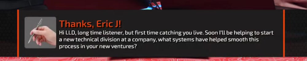 Hi LLD, long time listener, but first time catching you live. Soon I'll be helping to start
