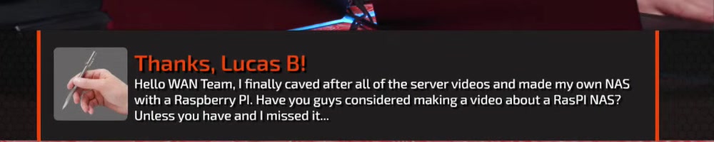 with a Raspberry Pl. Have you guys considered making a video about a RasPI NAS?