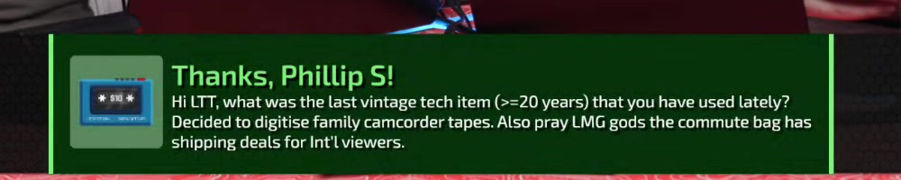 Your message was curated! We will answer it later in the show. | Timestamp |  |