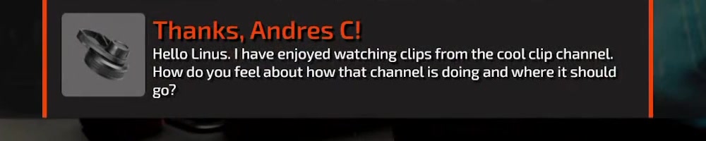 Hello Linus. I have enjoyed watching clips from the cool clip channel.