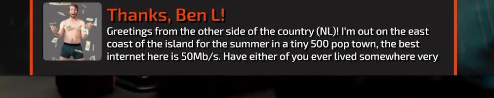 internet here is 50Mb/s. Have either of you ever lived somewhere very