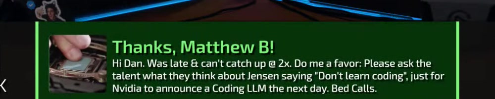 Nvidia to announce a Coding LLM the next day. Bed Calls. | Timestamp |  |