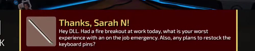 Hey DLL. Had a fire breakout at work today, what is your worst