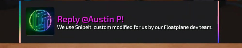 We use Snipelt, custom modified for us by our Floatplane dev team.