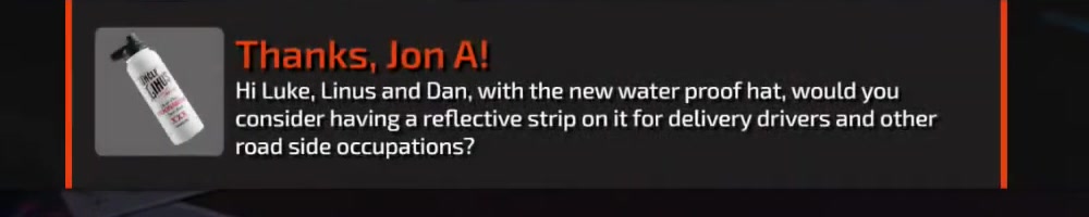 Hi Luke, Linus and Dan, with the new water proof hat, would you