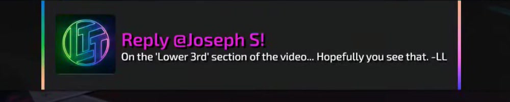 On the ‘Lower 3rd’ section of the video... Hopefully you see that. -LL