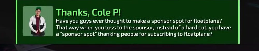 a“sponsor spot” thanking people for subscribing to floatplane?