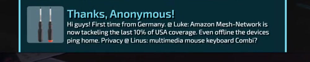 Hi guys! First time from Germany. @ Luke: Amazon Mesh-Network is