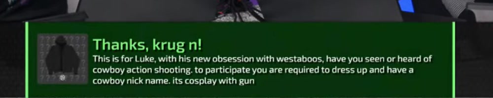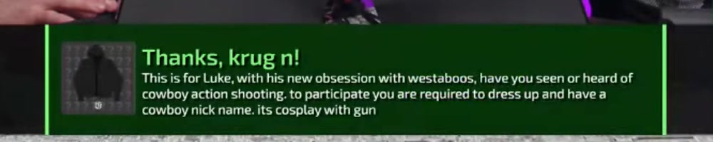 | Kyler J | message | Thanks, Kyler J!