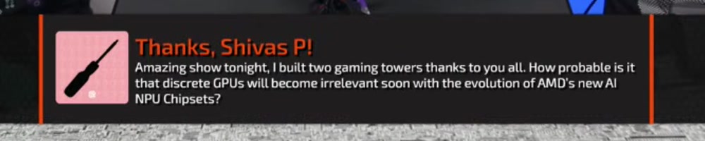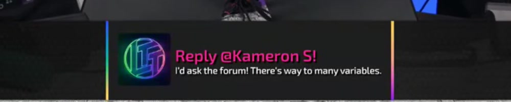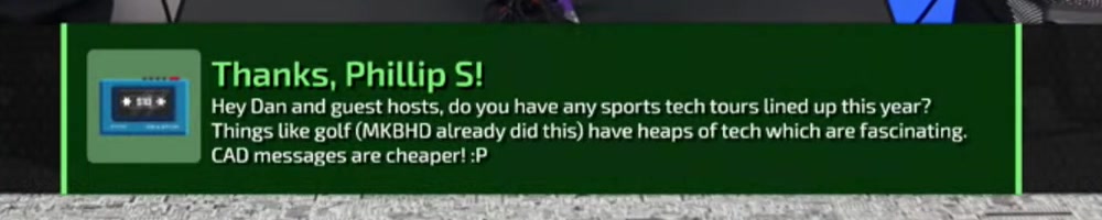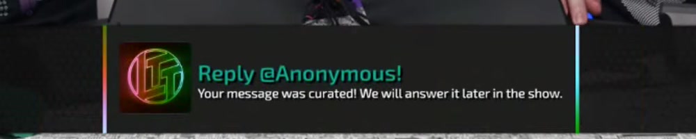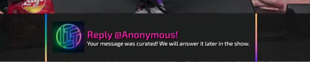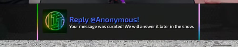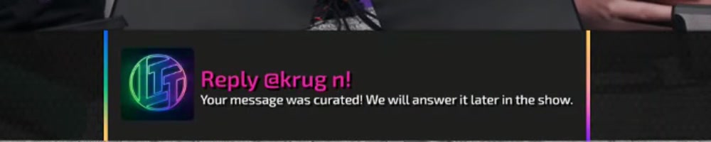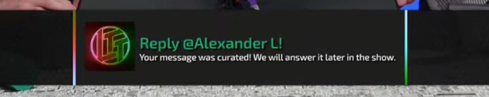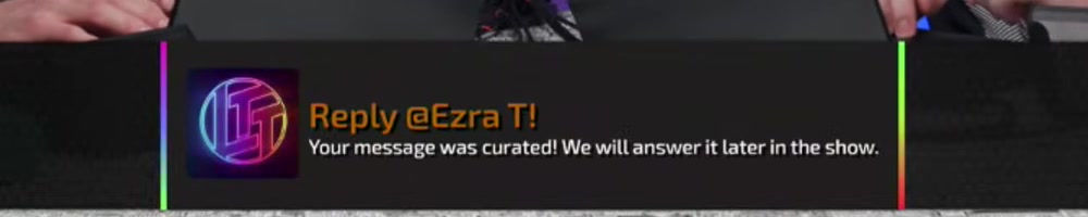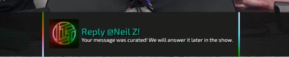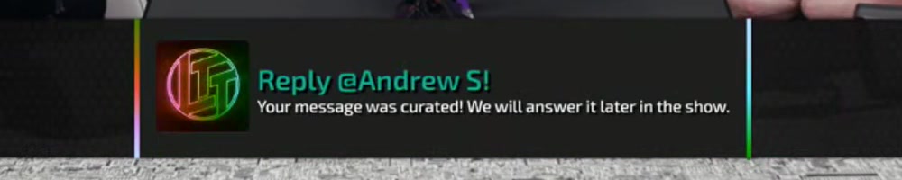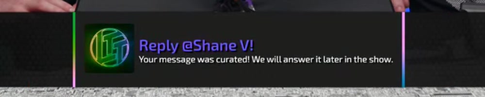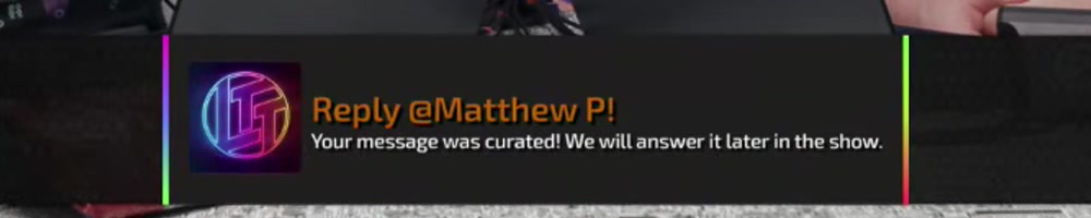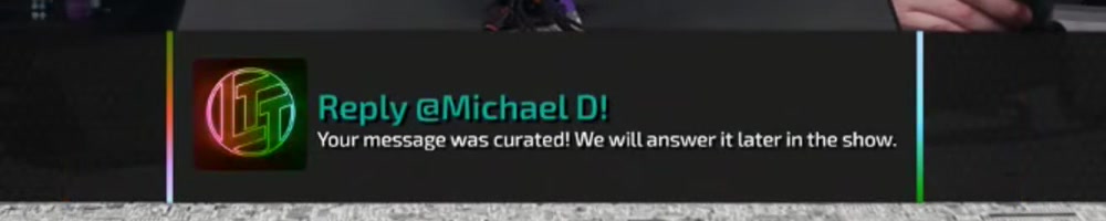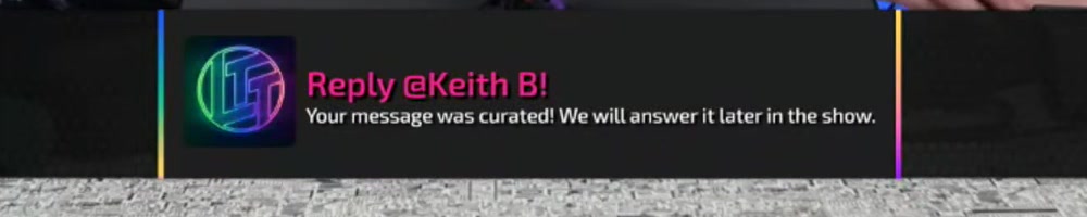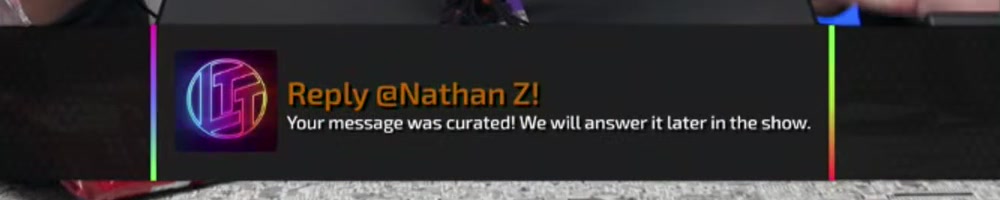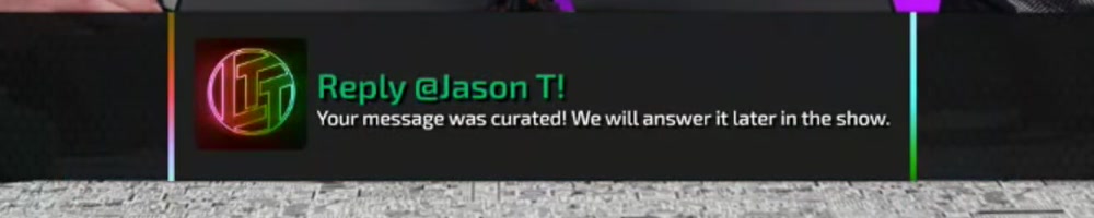 Your message was curated! We will answer it later in the show. | Timestamp |  |
