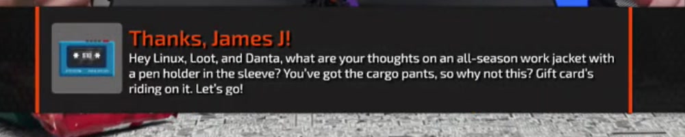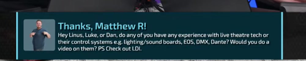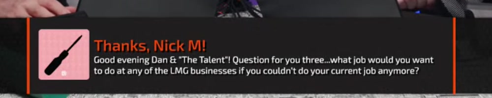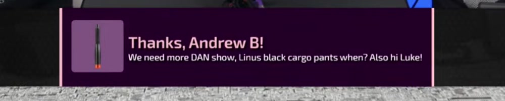 We need more DAN show, Linus black cargo pants when? Also hi Luke! | Timestamp |  |