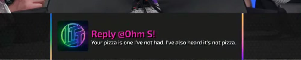 Your pizza is one I've not had. I've also heard it's not pizza. | Timestamp |  |